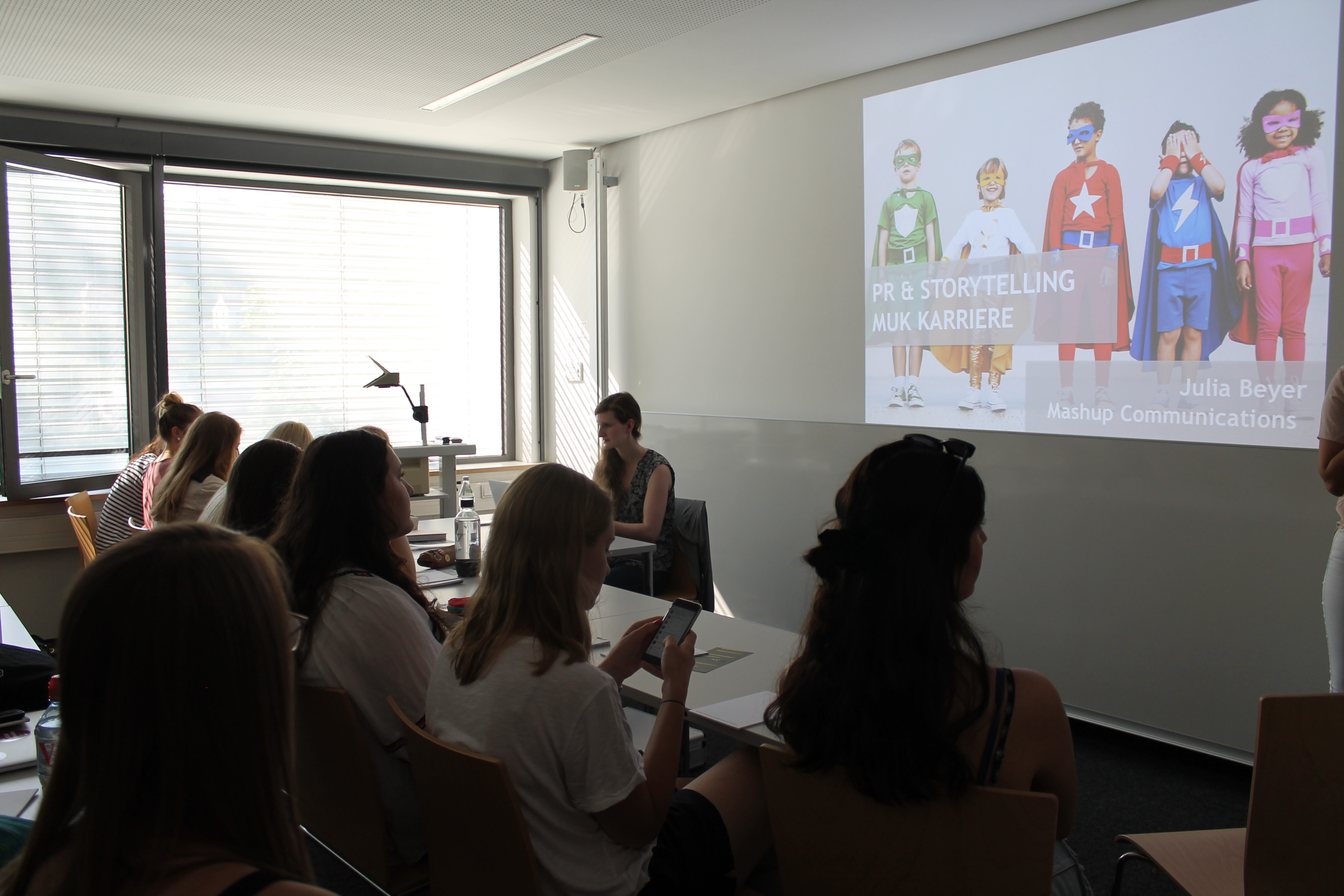 Weiter ging es dann mit dem PR und Storytelling Workshop von Julia Beyer. Unsere Referentin erklärte zunächst, was Storytelling genau meint und warum es so wichtig ist. Dass es in erster Linie darauf ankommt, wie man etwas erzählt und nicht was, machte sie anhand zahlreicher Beispiele wie Dove und Edeka deutlich. Verschiedene Herangehensweisen und Arten wurden dabei besprochen, wie beispielsweise die Archetypen der „Pionier“ oder der „Heiler“. Im Anschluss daran wurde über PR gesprochen und inwiefern sich diese vom Marketing abgrenzt, welche Stilmittel dabei genutzt werden können und wann genau PR neben dem Marketing überhaupt in Frage kommt.